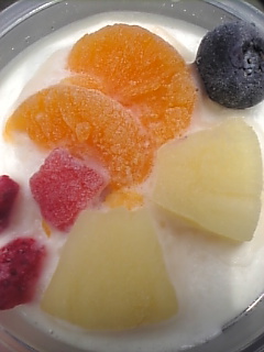 フルーツが凍ってる(●^ω^●)♪これが凄くウマイんだよ!九州以外の人はこのアイスに馴染みが浅いと思うけど…。