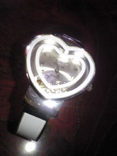 このファッション時計可愛くない??ノーブランドだけどブレスレット感覚で身につけられてハートだしキラキラだしお得だよね!1800円が雨の日セールで1200円になっててしかも電池交換無料とキタ!連れて帰らないわけにいかないわよ。ピンクとめっちゃ迷ったけど一目惚れだったしホワイトの方が服に合わせやすいってことでこっちにした!可愛いもの大好き♪\^o^/