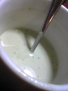 大麦若葉豆乳に混ぜてみた。美味しいとは言えないけどイソフラボンも摂れるし(・∀・)イイ!!