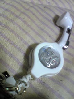 ワンセグケータイにしたから公共の場所でもTVが見れるようにストラップタイプのイヤホン買ったYO!(゜▽゜)ケータイと同じホワイト!コードが掃除機みたいに伸縮出来るから邪魔にならなくて(・∀・)イイ!!