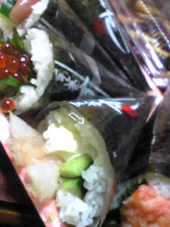 散らし寿司ならぬ手巻き寿司(゜∀゜)━━━━!!しかもズルしてできあいのもの…。