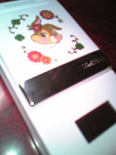 ケータイ届いた!(゜▽゜)早速液晶保護シール貼ってバニーちゃんをデコ電したYO!\^o^/うさぎケータイ(・∀・)イイ!!